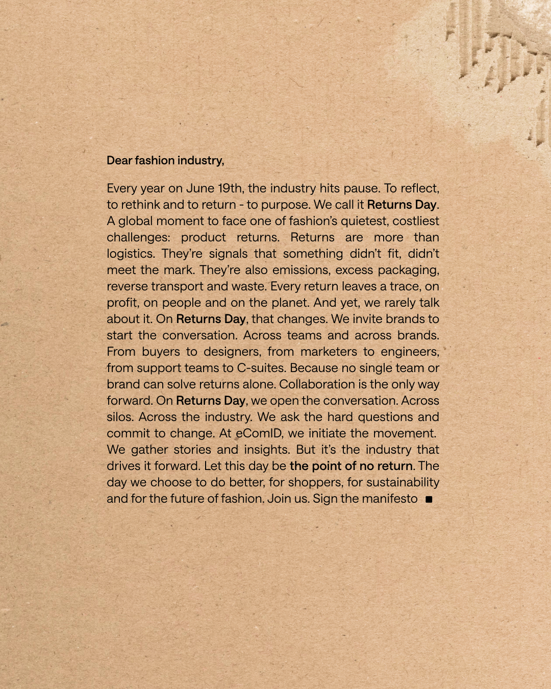 By signing, brands commit to one simple act: talking about returns. There are no fees, no strings attached, just a shared commitment to open the conversation across the industry.
